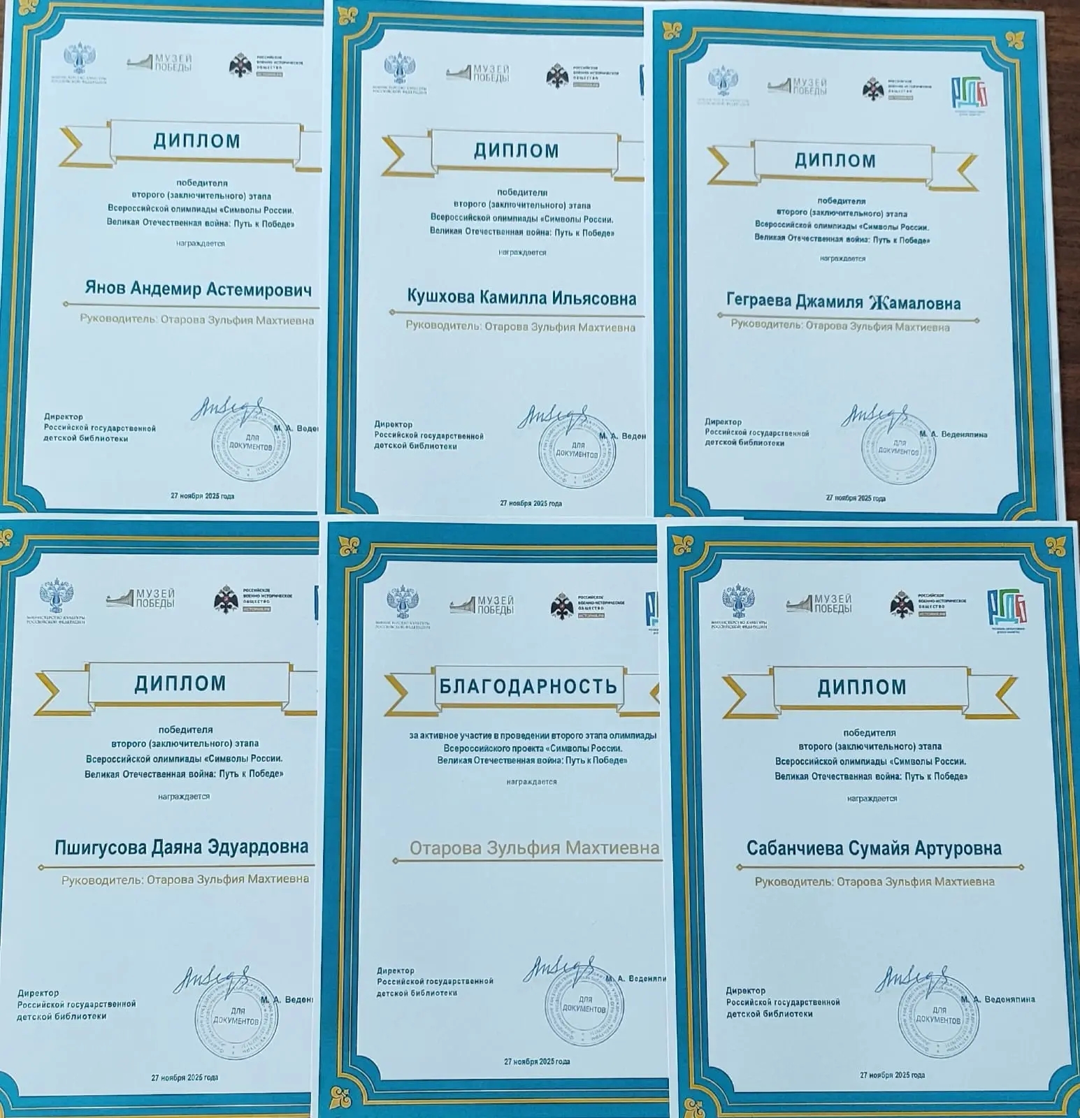 Отаровой Зульфии Махтиевны одержали победу на Всероссийской олимпиаде: "Символы России. Великая Отечественная война: Путь к Победе".
